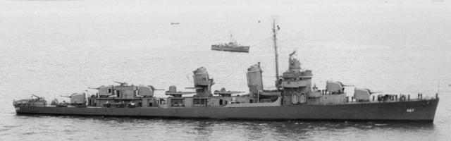 Named for a Civil War-era naval officer, Strong was laid down with Chevalier at Maine’s Bath Iron Works in 1941 and—after Chevalier plus predecessors Nicholas and O’Bannon—was the fourth ship of the 2,100-ton Fletcher-class launched there in 1942. Commissioned seventh of 175 ships in the class, she derived her character in part from the many New England officers recruited by her skipper, Cmdr. (later RAdm.) Joseph H. “Gus” Wellings.