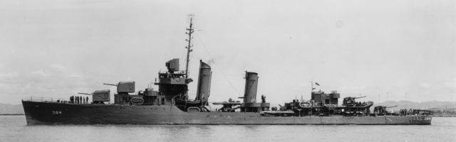 Dunlap arrived at Nouméa, New Caledonia, 6 December 1942 and operated from that base on training and patrol duty, and as escort for convoys to the Fiji, Tonga, and New Hebrides Islands until arriving at Guadalcanal 30 July 1943 for duty in the Solomons. On the night of 6-7 August she was sent with five other destroyers to intercept a Japanese force carrying reinforcements to Kolombangara. In the resulting Battle of Vella Gulf, a brilliant night torpedo action, the ably handled task group sank three Japanese destroyers and drove the fourth back to its base at Buin. They suffered no damage themselves. (continued)