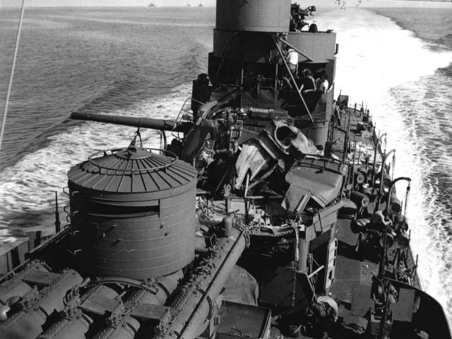 Damage to No. 3 5-inch gun from hangfire, May, 1943.