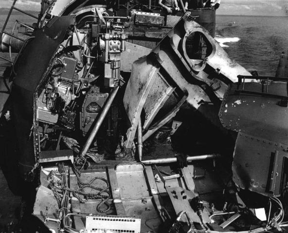 Damage to No. 3 5-inch gun from hangfire, May, 1943.