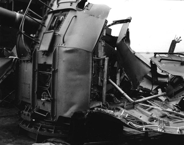 Damage to No. 3 5-inch gun from hangfire, May, 1943.