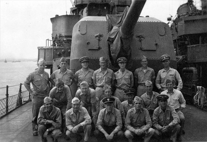 Courtesy R.D. Turpen collection Cruise book, page 18 Officers Top: Scheider, Sinclair, Kearns, Turpen, Fanning, Young, Capt. Lyndon. Middle: Frost, Nikel, DuBourdieu, Jacobs, Townshend, Kelly. Bottom: Sokolski, Hamilton, Hansman, Gardner and Casebolt. Tokyo Bay, September 1945 |