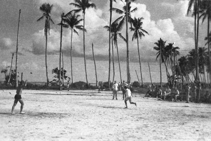 Courtesy R.D. Turpen collectionCruise book, page 29Ball Game. The game, the trees and the clouds, just before Christmas 1944