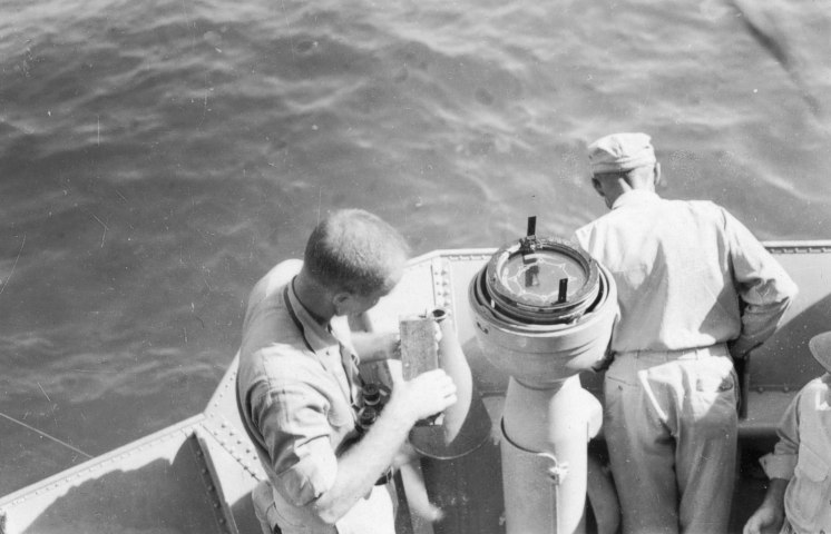 Courtesy R. Townshend, Jr. collectionCruise book, page 33November 12, 1944—Sub sinking off Yap Island