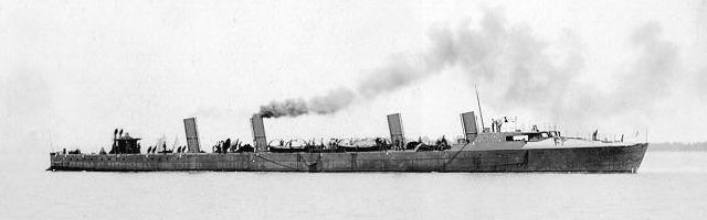 Gun battery: 2 x 3-inch/50 caliber rapid fire guns in single pedestal mounts; 6 x 6-pounders.